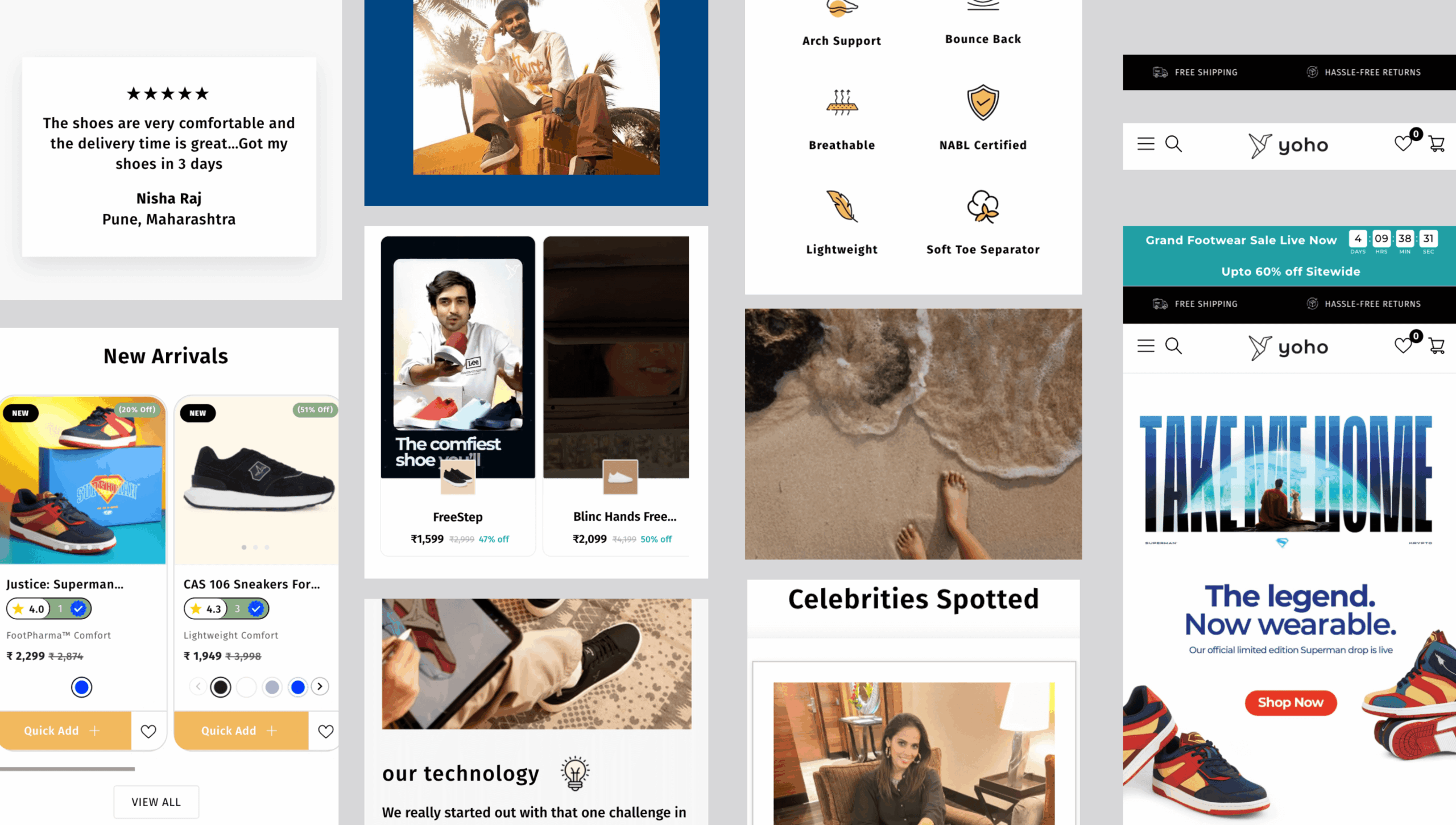 Brad Team developed a feature allowing customers to filter PDPs to display images based on the selected color variant. We also gave the Yoho Footwear team the flexibility to create their own color swatch hierarchy in the collection’s faceted navigation, making it easy to upload colors and swatches for new products. Additionally, we built a fully flexible homepage feature that allows complete control over hero images and multiple text sections along both the x and y axes. This customized solution empowers the brand’s operators, aligns with their “animated text” design direction, and follows responsive design best practices. The entire Shopify site was launched with custom API integrations connecting warehouse operations, inventory management, CRM, and backend systems—creating a seamless and scalable eCommerce infrastructure.